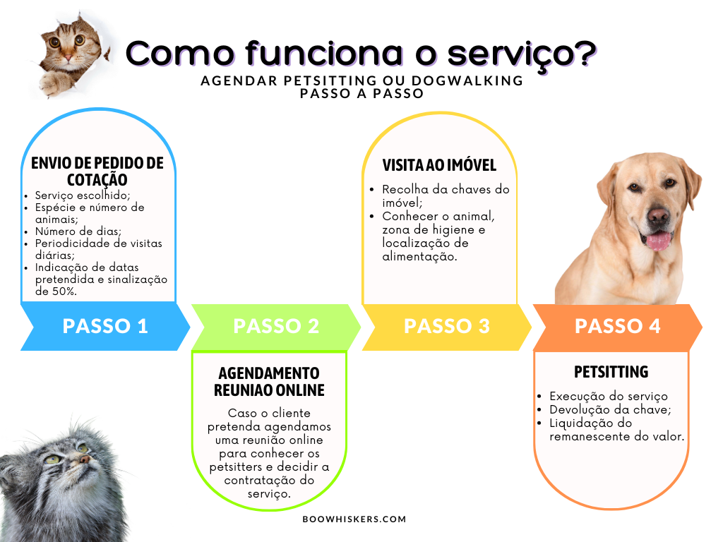 Preços válidos para dias consecutivos de trabalho. Nota: Não Inclui o dia de recolha de chave no domicílio do animal para conhecer o espaço, localização de alimentação, objetos de higiene e conhecer os patudinhos. Entrega de chaves em mãos em horário a combinar acresce desde 5€ (valor a apresentar de acordo com deslocação) e tem a duração máxima de 30 minutos.